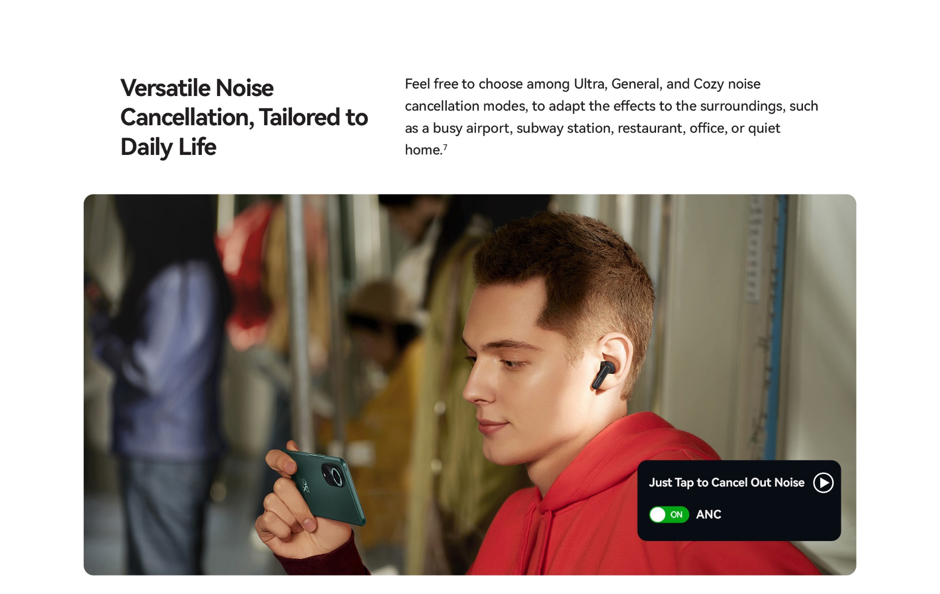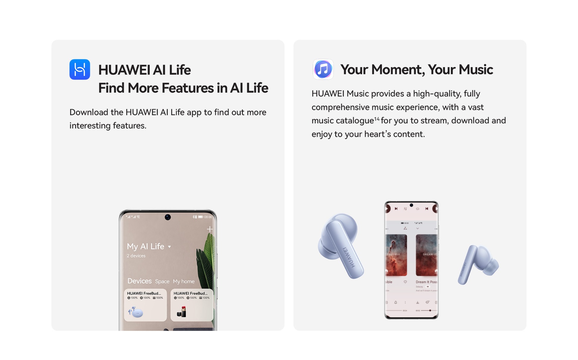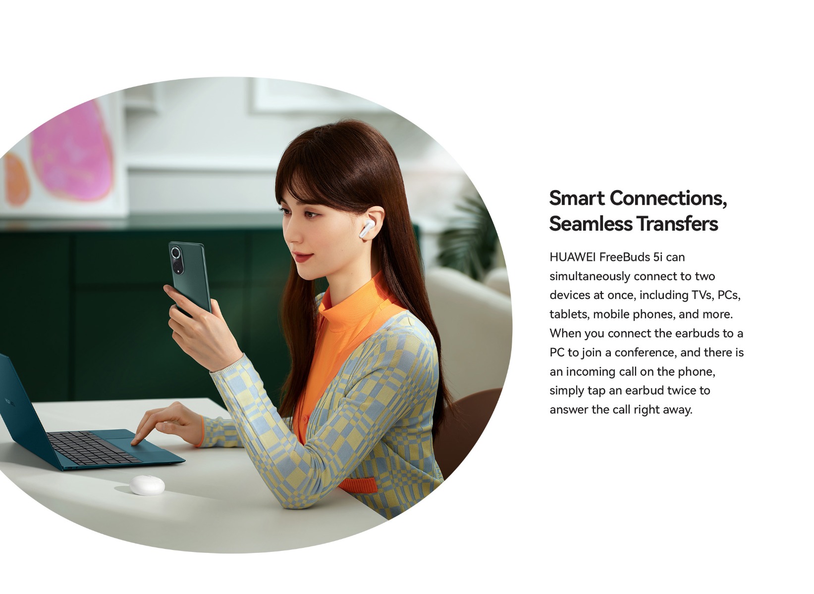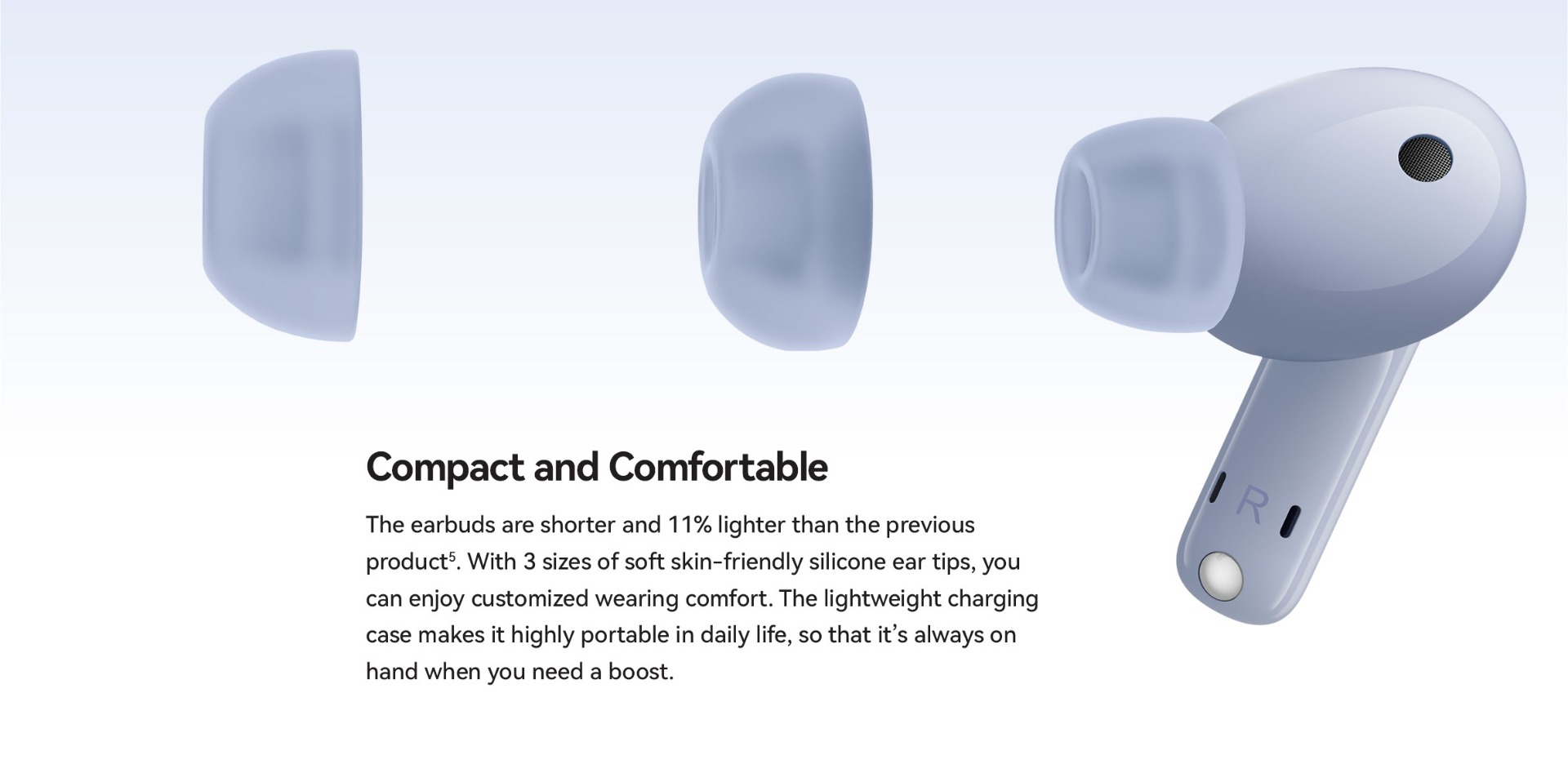 | Specifications | SPCG00018550 HUAWEI FreeBuds 5i Specifications – Huawei Global HUAWEI FreeBuds 5i is Hi-Res certified, featuring a wide frequency response, and full-link high-resolution sound for HD audio sources. 42 dB multi-mode active noise cancellation allows you to make adjustment on demand, and provides a comfortable listening experience. Find out more specifications. HUAWEI FreeBuds 5i, HUAWEI FreeBuds 5i specifications, HUAWEI FreeBuds 5i specs, HUAWEI FreeBuds 5i data 30.9 mm 21.7 mm 23.9 mm About 4.9 g±0.2 g 48.2 mm 61.8 mm 26.9 mm About 33.9 g±1.0 g *Product size, product weight, and related specifications are theoretical values only. Actual measurements between individual products may vary. All specifications are subject to the actual product. Ceramic White Nebula Black Isle Blue Active noise cancellation, Call noise cancellation, Transparency Mode Hall sensor/Cap sensor 10 mm dynamic driver BT 5.2 Supported* Supported *Requires smartphones running EMUI10 or above. Per earbud: 55 mAh (min)* Charging case: 410 mAh (min)* Music playback on 1 charge: 6.0 hours (with ANC enabled)** Music playback on 1 charge: 7.5 hours (with ANC disabled)** Music playback with charging case: 18.5 hours (with ANC enabled)** Music playback with charging case: 28 hours (with ANC disabled)** About 60 minutes for the earbuds (in the charging case)*** About 110 minutes for charging case without earbuds (wired)*** *Actual capacity may vary slightly. **The battery life data come from Huawei labs with conditions by default: volume at 50%, and the AAC mode is enabled. The actual battery life may vary depending on the volume, audio source, environment interference, product features, and usage habits. ***The charging data come from Huawei labs with the test condition: 25°C at normal temperature conditions. Press control: twice/long press Swipe control: up/down Press IP 54 *This product is not a professional waterproof device, but is splash resistant during normal use. It has been tested to reach the IP54 level in a lab under controlled conditions. The splash resistance is not permanent, and the protection may decrease with daily wear and tear. Earbuds Charging case Silicone ear tips (three sizes)(Available in large, medium, and small sizes. The medium-sized pair is attached by default.) USB-C charging cable Quick start guide (including safety information) Warranty card |