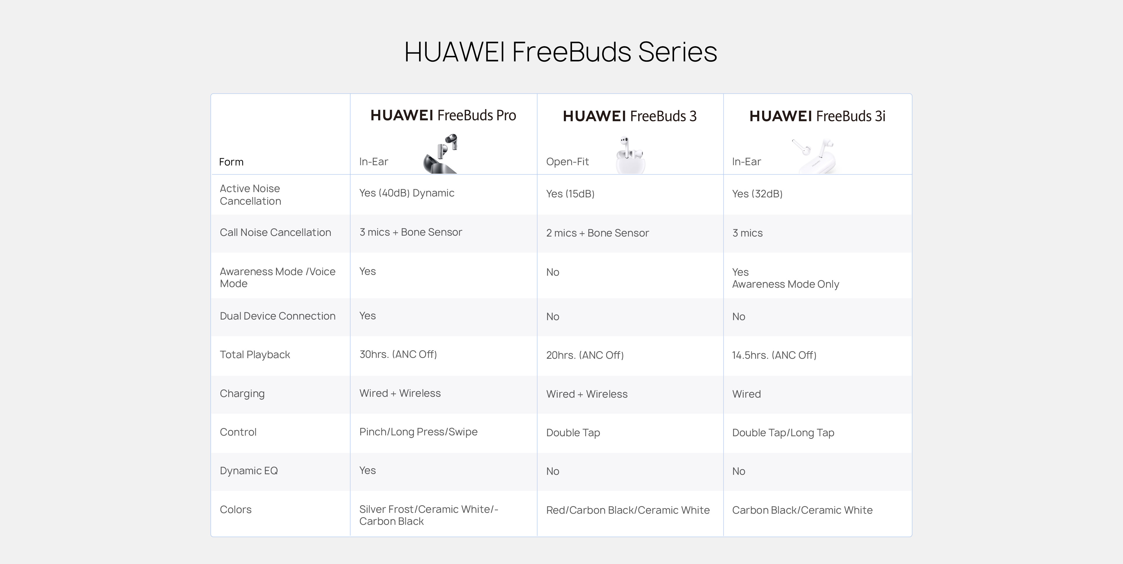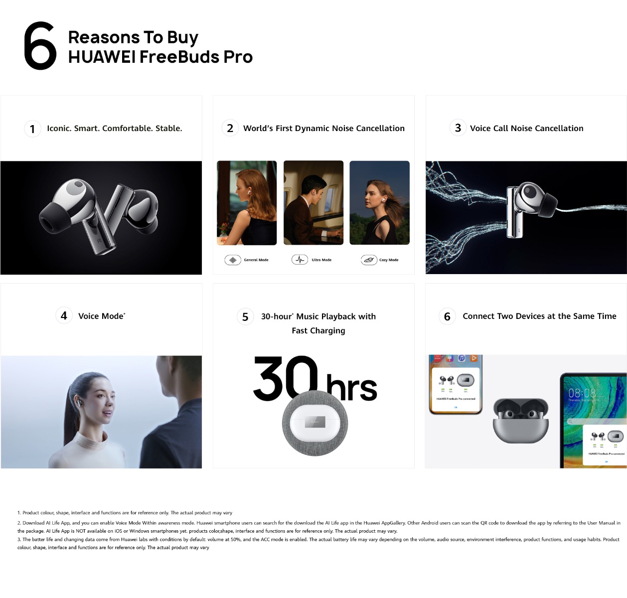 Active noise cancellation Call noise cancellation Awarness mode Voice mode |