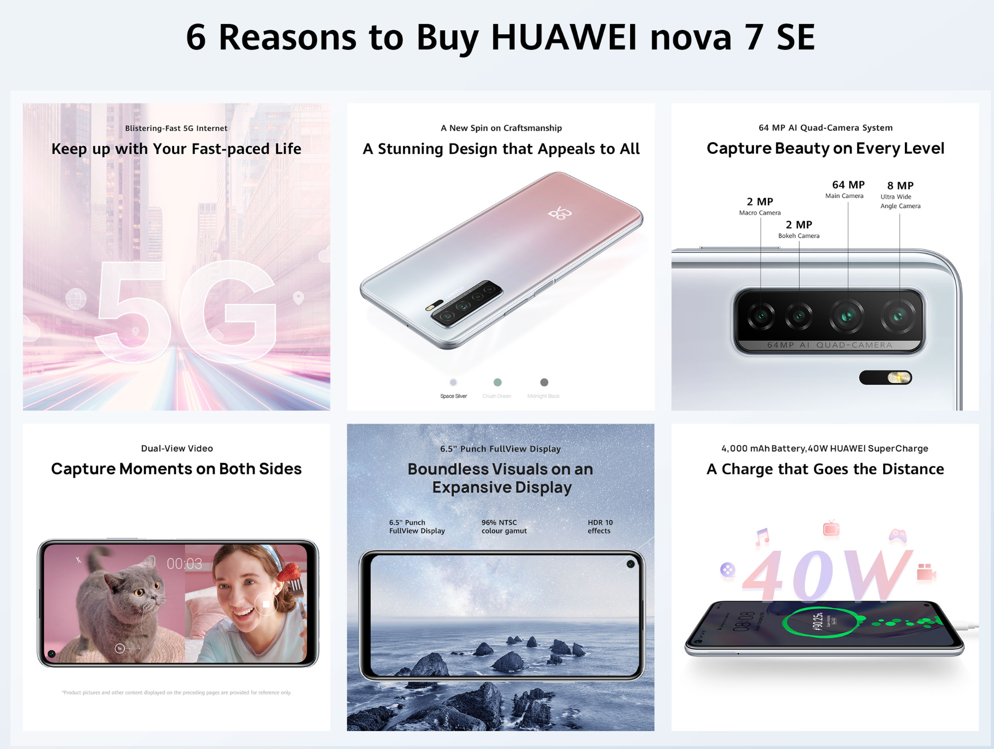 64 MP (High resolution Lens, f/1.8 aperture) + 8 MP (Ultra Wide Angle Lens, f/2.4 aperture) + 2 MP (bokeh lens, f/2.4 aperture) + 2 MP (Macro lens, f/2.4 aperture) Autofocus (phase focus, contrast focus) AIS (HUAWEI AI Image Stabilization) |